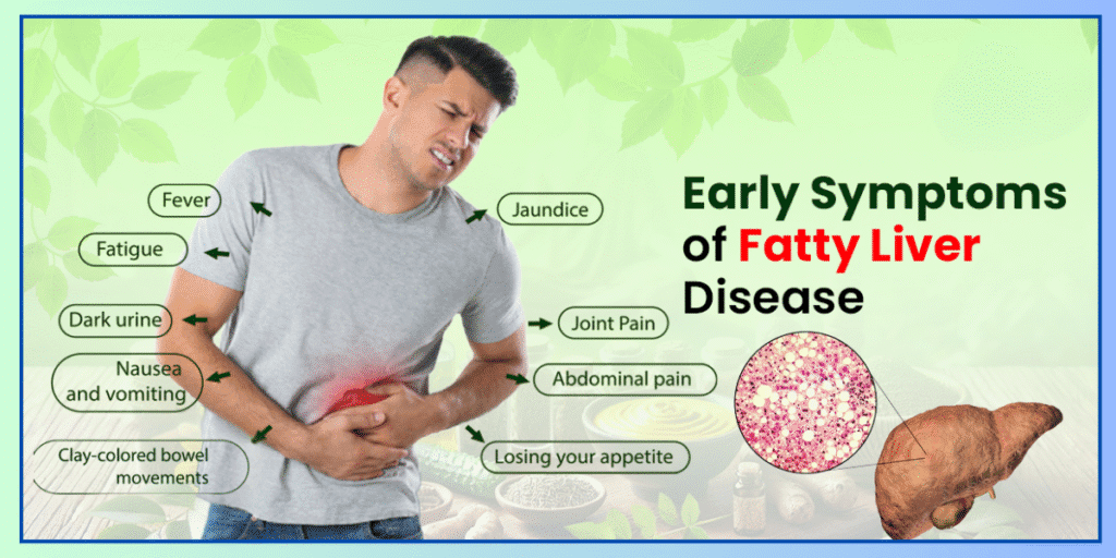 Fatty liver disease often shows no symptoms in early stages. However, some patients may experience